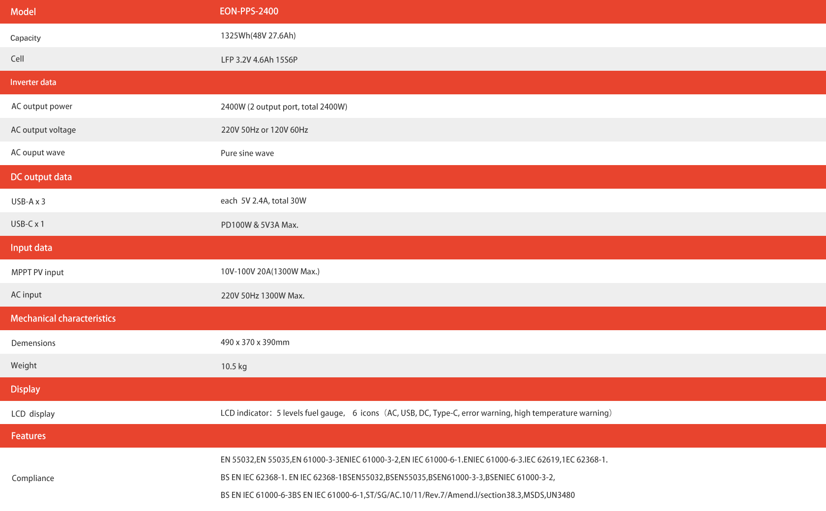1325Wh LFP battery, supporting both grid and solar "dual-mode" power replenishment.